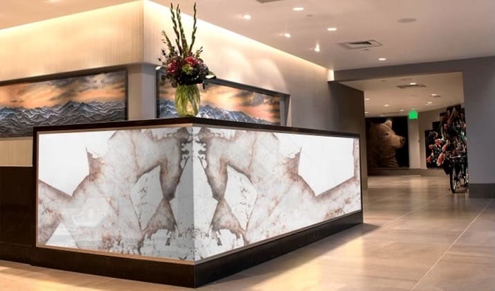From hallways with heavy foot traffic, to bathroom vanities and kitchen countertops Onyxa Porcelain is resilient and versatile. Our Porcelain is tough against food and liquid spills, as well as external wear and tear.